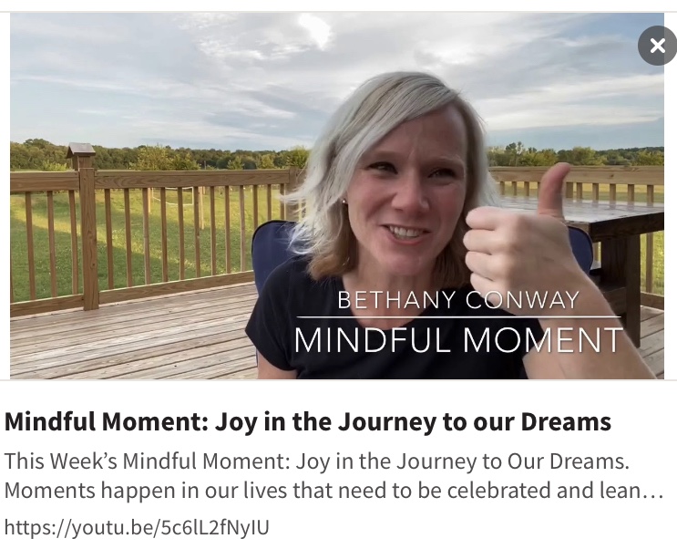 This Week’s Mindful Moment: Joy in the Journey to Our Dreams. Moments happen in our lives that need to be celebrated and leaned into. But these moments can quickly become overshadowed by the next challenge, milestone, or step towards the dream. This weeks challenge… “let your joy be in the journey, not in some distant goal.”